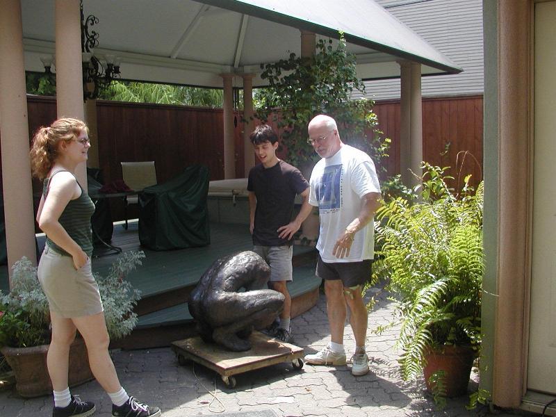 These pictures by Bill Luft and Larry Larrinaga at their home in Houston the day the sculpture was delivered by Dietrich Wegner and Barb Dregne.